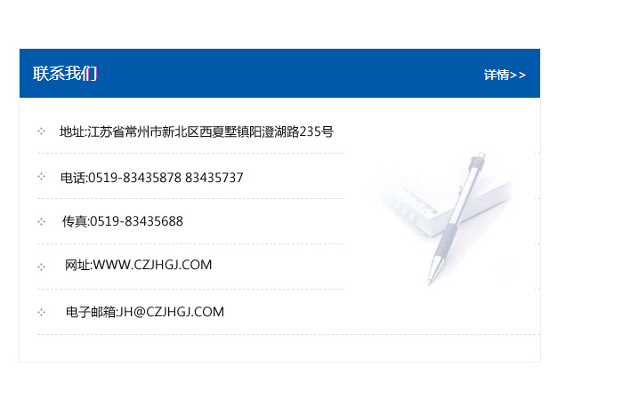 傳真:0519-83435688    郵編:213135    網址:WWW.czjhgj_com.wygdyskz.com    電子郵箱:JH@czjhgj_com.wygdyskz.com